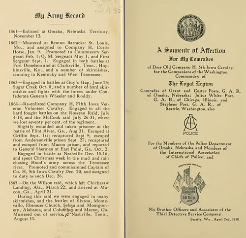 | This pamphlet published by Seavey in 1910 describes his allegiances to both military and law enforcement. Library of Congress |